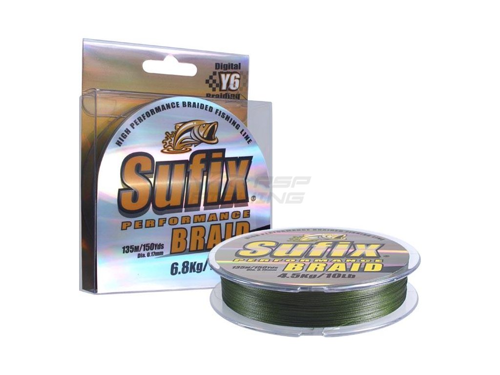 Výborná přívlačová šňůra v průměrech 0,12 / 0,16 / 0,18 / 0,20 a 0,23mm. Sufix Performance Braid představuje další generaci pletených šňůr. Exkluzivní Y6 spřádací technologie zaručuje kulatější, hladší a slabší šňůru. Skvělé odhozové vlastnosti, super pro přívlač. Ultra-vysoká odolnost proti oděru a skvělá citlivost. Nízko viditelná zelená barva. Šňůra prošla dlouhým a náročným testováním v extrémních podmínkách mořského i sladkovodního rybolovu.