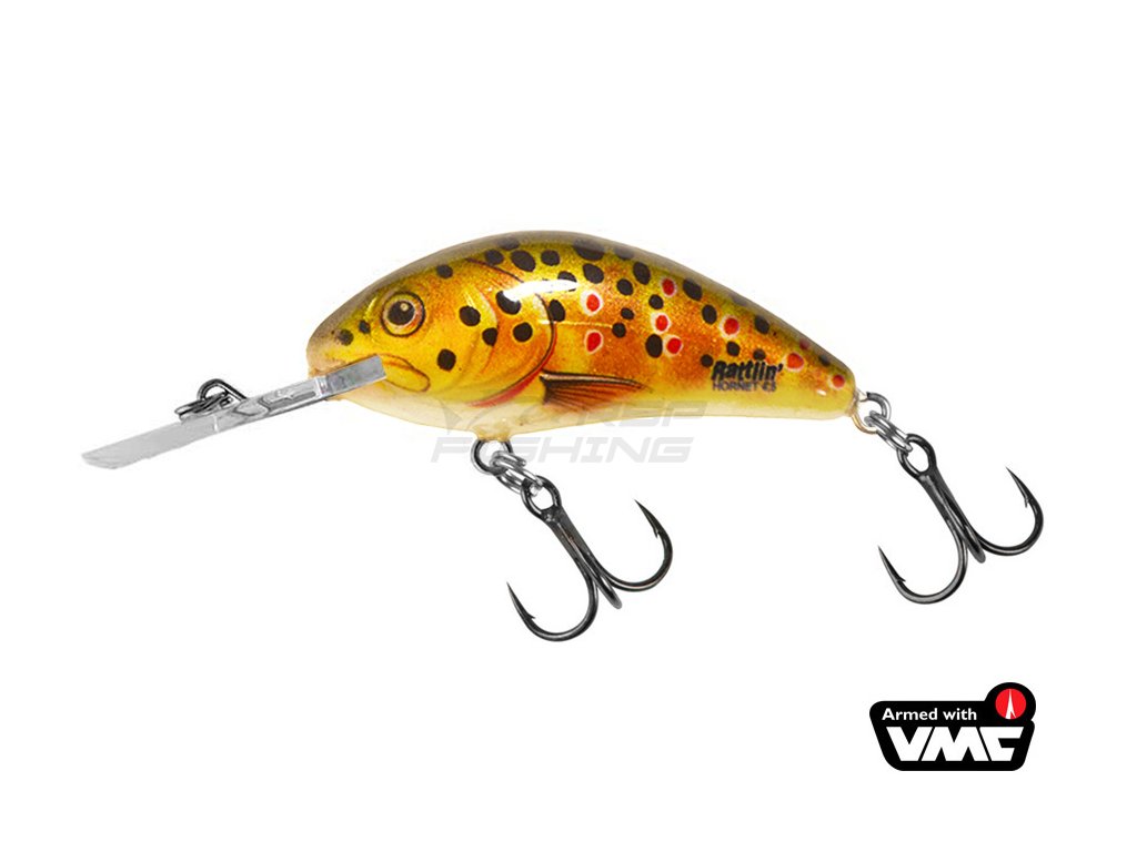 Ve světě je Salmo Hornet považován za nejlepší nástrahu všech dob. Ve spolupráci s předními americkými rybáři vytvořila firma Salmo novou vylepšenou verzi této nástrahy - plovoucí Rattlin´ Hornet. Je vyroben z nerozbitného polykarbonátu a nově je ve wobleru zabudováno chrastítko se skleněnými kuličkami + systém SICS se kterým můžete nahodit až o 50% dále než s klasickým hornetem 4 a o 20% dále než s Hornetem 5. Může se ponřit do hloubky 2,5m a při trolingu a správném vedení až do 5,0m. Wobler je osazen téměř nezničitelnou polykarbonátovou lopatkou a velmi ostrými trojháčky Mustad KVD Elite Triple Grip.